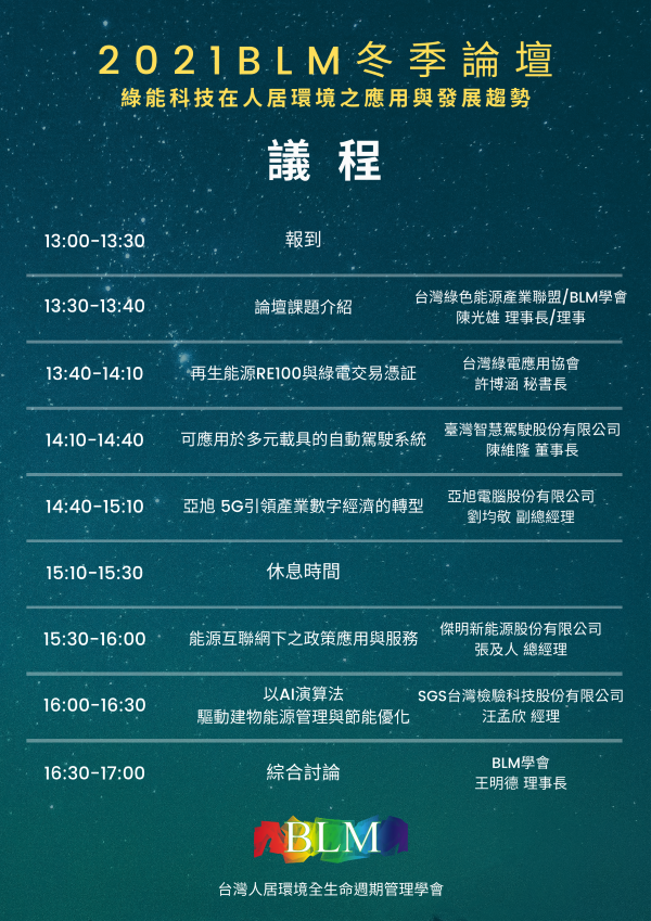 2021 BLM冬季論壇:綠能科技在人居環境之應用與發展趨勢